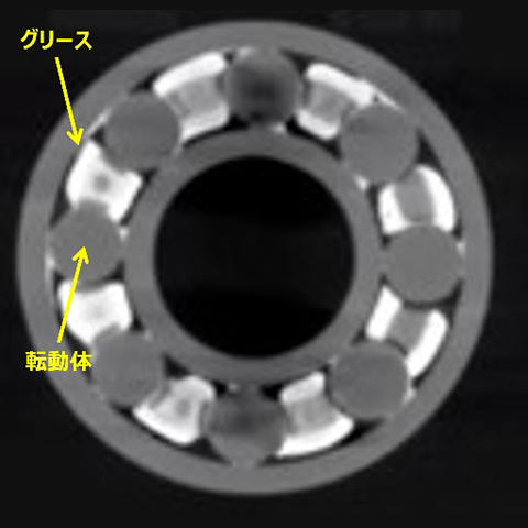 また、JRR-3の熱中性子ラジオグラフィ装置を利用して、ベアリング内のグリース分布やベアリング回転中における、グリースの流動状態のその場観察に成功し、学会発表や論文投稿等を行っています。